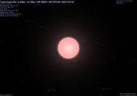 Sono tutte stelle di classe M e K e delle prime due possiamo vedere l’aspetto, sempre molto inquietante, della stella da 10 UA. Per quanto detto prima ho inserito nella tabella anche la stella variabile Mira indicandone il valore minimo ed il massimo, mentre il link mostra la stella da 10 UA con un diametro di 280 volte quello del Sole, riportato da Celestia.