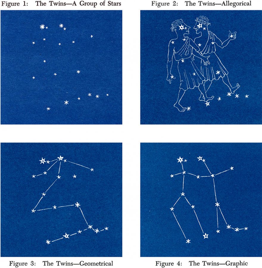 Ti raccomando un geniale illustratore americano H. A. Rey - The stars: a new way to see them...un esempio vale più di tanti discorsi... (la sua versione dei Gemelli è ovviamente la n. 4)