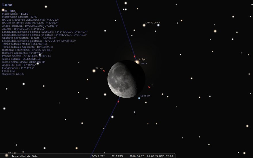 Il 26 Giugno, attorno all'01.05, congiunzione radente Luna-Nettuno (per le latitudini più fortunate occultazione parziale) con contestuale uscita dall'occultazione lunare di \lambda Acquarii (l'ingresso è a pochi gradi d'altezza).