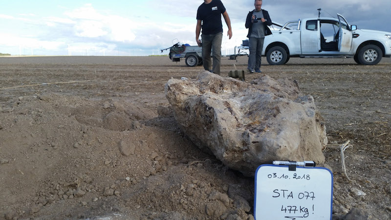 477 kg! È il peso di uno dei più grandi meteoriti mai scoperti in Francia. L’eccezionale ritrovamento a Saint-Aubin, il 3 ottobre, da un gruppo di appassionati, tra i quali Pierre Antonin e Alain Gallien. L’eccezionale ritrovamento alla fine di una campagna di indagine che ha interessato il territorio del nord est francese per oltre 7 mesi del 2018.