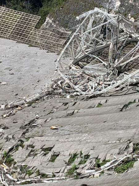 Davvero sfortunato questo gioiello che  per 57 anni ha servito come una risorsa di livello mondiale per la radioastronomia, la ricerca planetaria, del sistema solare e geospaziale. Per la seconda volta quest’anno, un cavo strutturale nel radiotelescopio più grande del mondo ha ceduto , danneggiando la parabola riflettente e mettendo la struttura sull’orlo del collasso. Il secondo cavo si è spezzato il 6 novembre, appena tre mesi dopo il guasto di un cavo ausiliario nella stessa struttura.