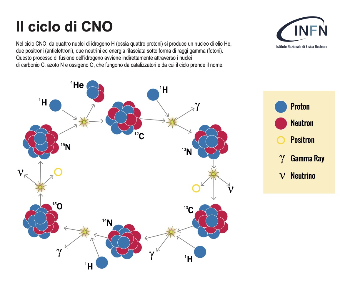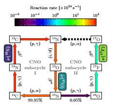 L’evoluzione delle stelle è guidata dalla produzione di energia dovuta alle reazioni nucleari che avvengono nel loro nucleo. Nella maggior parte della loro vita, la fusione nucleare nelle stelle trasforma idrogeno in elio attraverso due meccanismi che sono ipotizzati teoricamente: Il ciclo protone – protone (P-P) ed il ciclo carbonio – azoto – ossigeno (CNO). Il ciclo CNO può svilupparsi in più modi differenti, dei quale due sono i principali. Il primo è quello preponderante, il secondo coinvolge isotopi molto stabili, e in determinate circostanze può aumentare di efficienza.