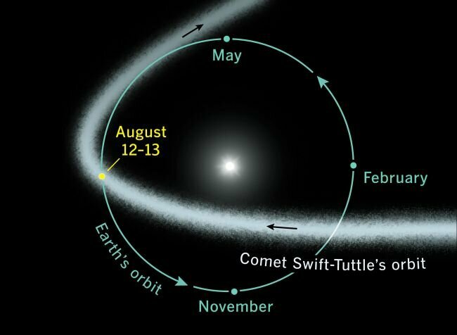 Il punto è che la Terra attraversa la loro orbita (inclinata) solo verso i primi di agosto, e in quel momento le intercetta.