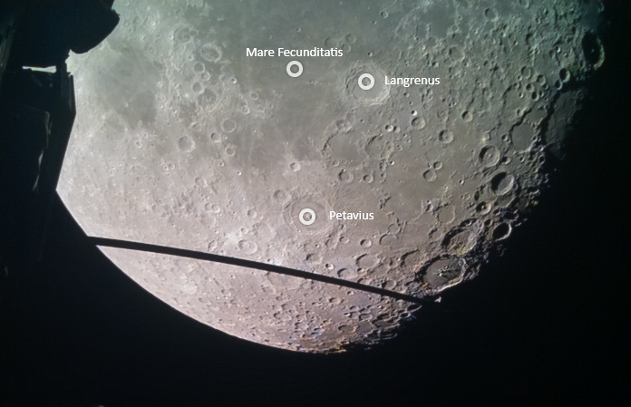 qui invece un particolare della Luna con indicati un mare e due crateri