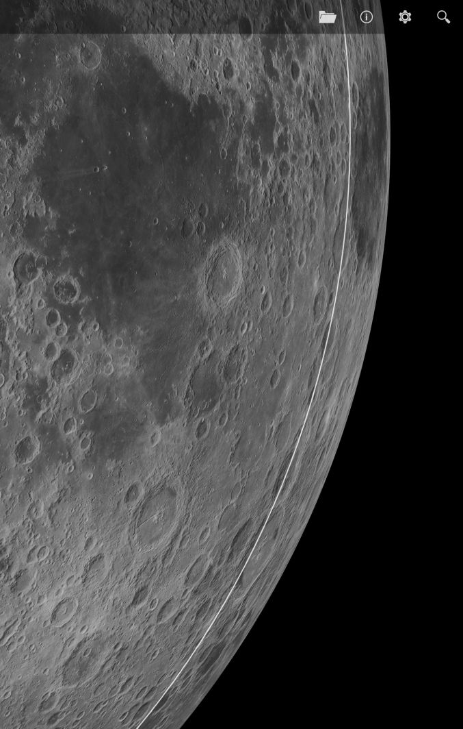questo è lo screenshot (ridotto!) del tablet con una parte dell'immagine della Luna creata con la bellissima app "LunarMap HD"