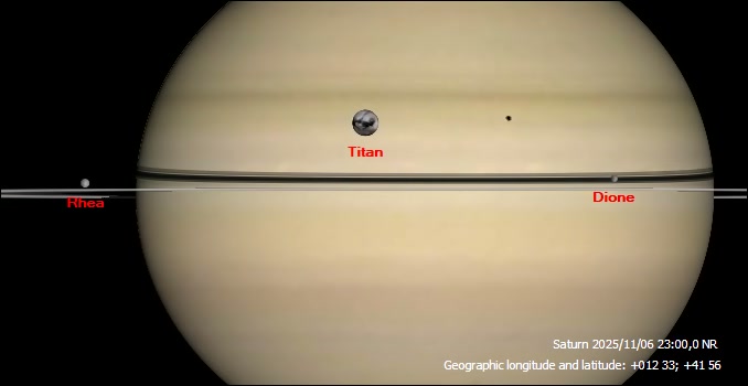 Anche in questo caso sorgerebbe spontanea la domanda di dove sia finita l’ombra di Titano visto che si vedono altre due belle ombre contemporaneamente: la risposta è la stessa di prima!