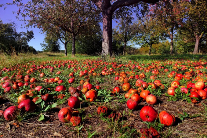 e più prosaicamente di un campo con una marea di mele cadute sul terreno
