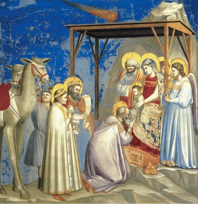 Tradizionalmente nei nostri presepi compare sempre questo astro celeste appena sopra alla capanna come pure in vari affreschi, ad esempio quello di Giotto