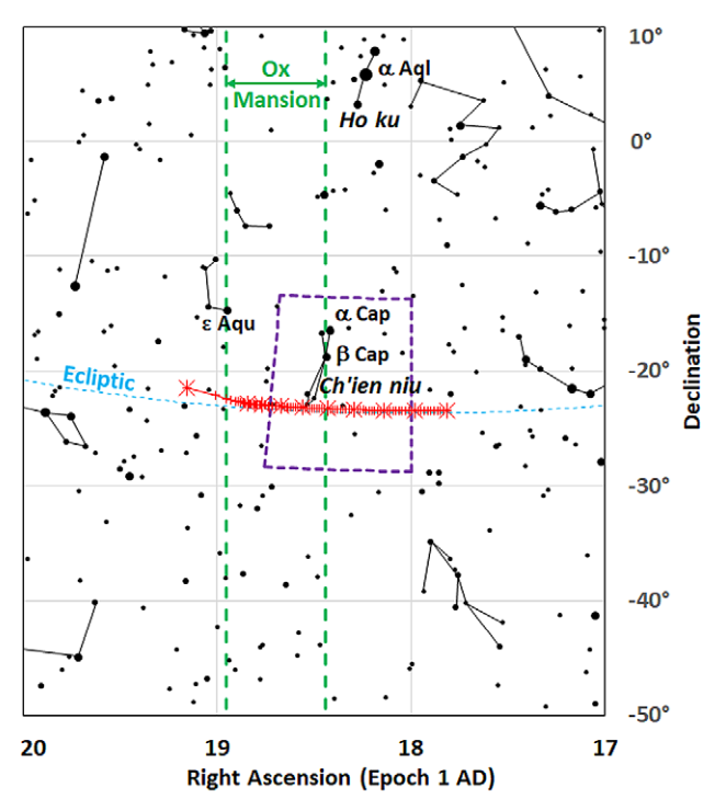 Si parte innanzitutto da una mappa celeste contenente il percorso della cometa, come riportata dagli annali Cinesi