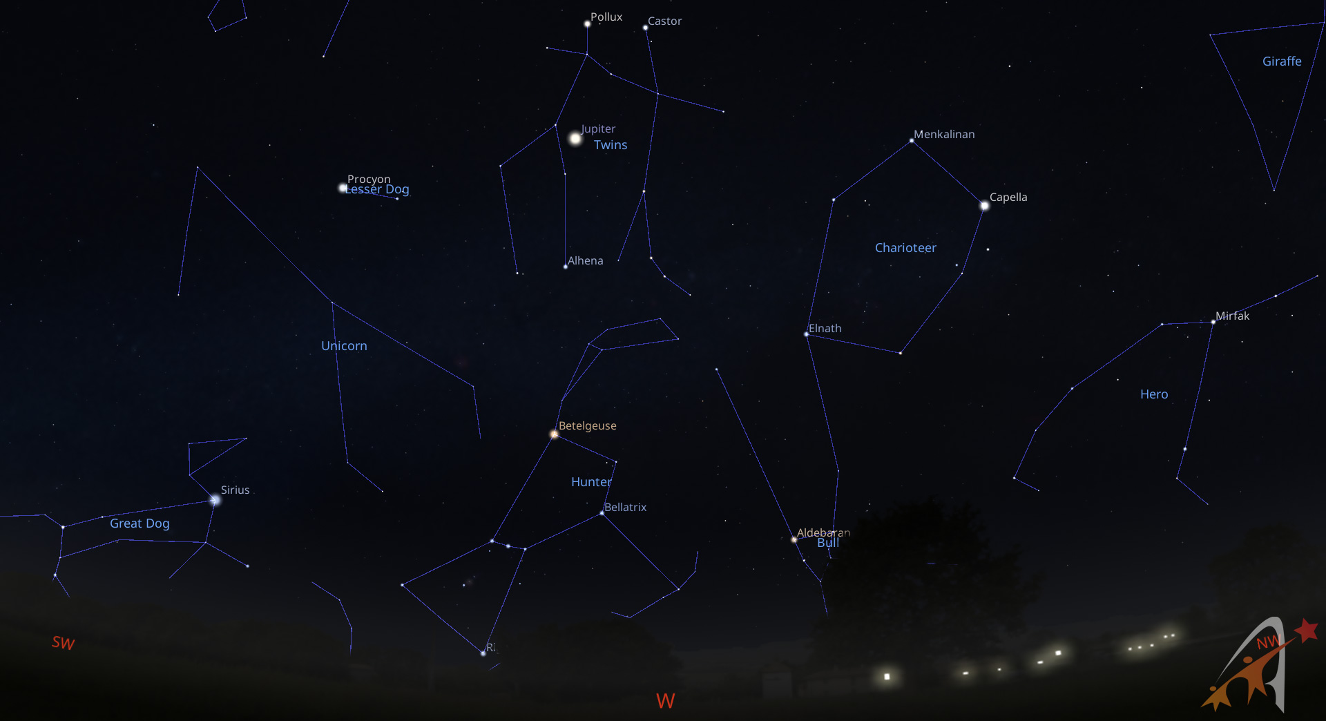Il mese di Aprile inizia il vero e proprio passaggio dal cielo invernale a quello estivo. Al calare del crepuscolo infatti possiamo ancora scorgere per qualche ora le costellazioni che hanno dominato il cielo invernale: il cacciatore Orione con le sue splendide stelle Betelgeuse e Rigel, i Gemelli con Castore e Polluce, il Toro con la luminosa Aldebaran e l’Auriga con Capella.