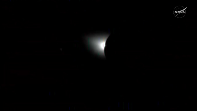 Quando il Sole stava per riapparire da dietro la Luna, in questa immagine che ho tratto dalla diretta della NASA
