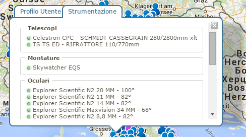 Da oggi, con pochi click possiamo aggiungere telescopi, montature, oculari e accessori e vederli poi associati al nostro profilo utente in AstroFriends, nella nuova tab Strumentazione: