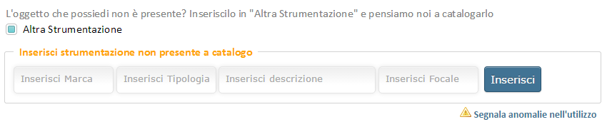 In particolare, di curare l'area "Altra Strumentazione", sezione dove vengono ospitati tutti gli oggetti da voi posseduti ma non presenti a Catalogo al momento dell'inserimento.