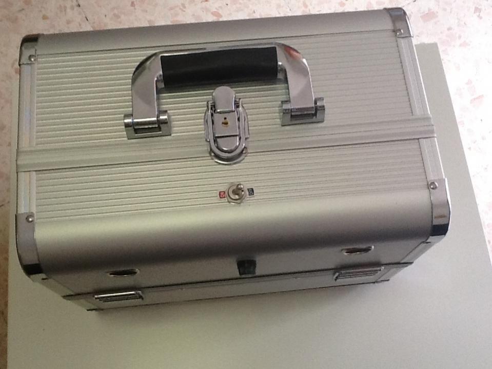 La valigetta oltre alla maniglia ha anche la tracolla.