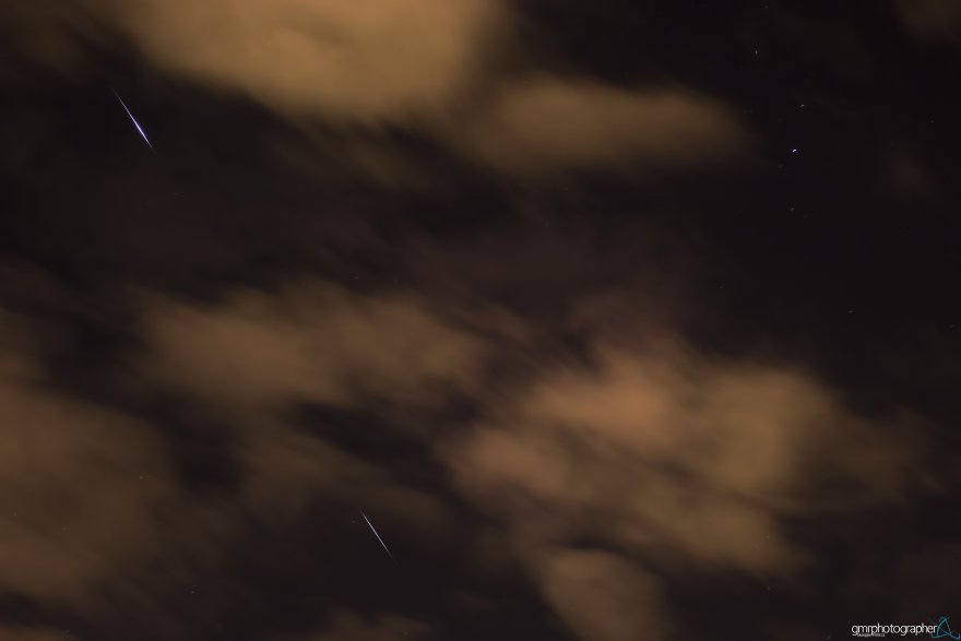Come si può vedere il cielo era decisamente coperto, con qualche 'buco' tra le nubi qui e lì e fortunatamente i due flare sono stati avvistati e fotografati entrambi! Il primo in alto con magnitudine molto elevata, -8.1, mentre il secondo era più contenuto, e parzialmente indebolito da una nuvola leggera di passaggio.