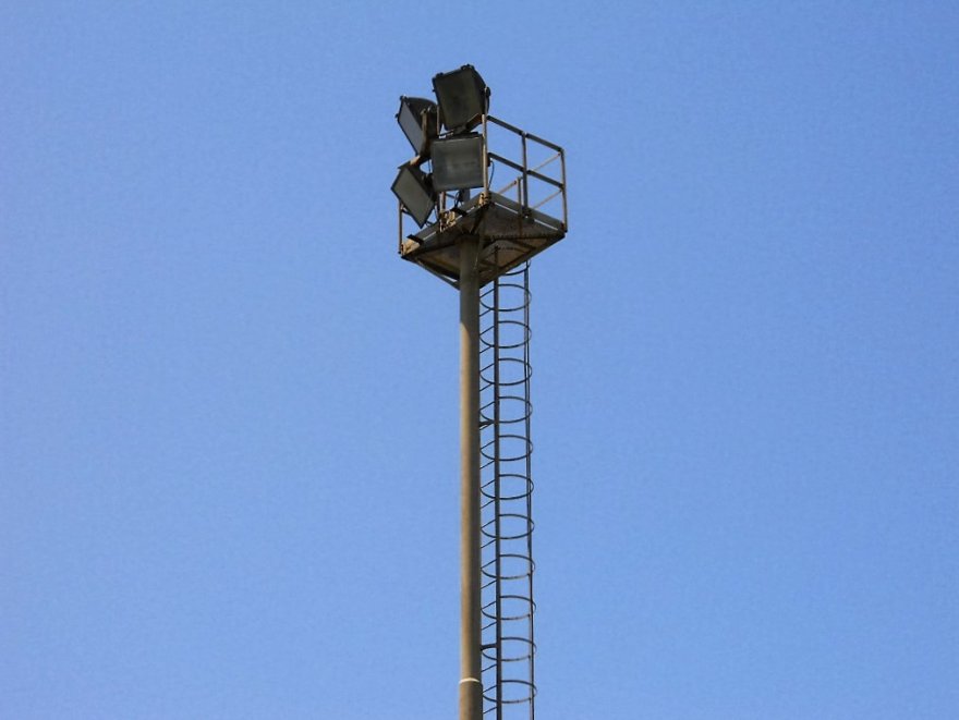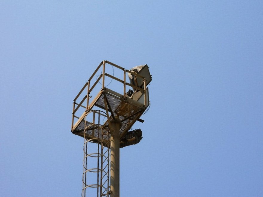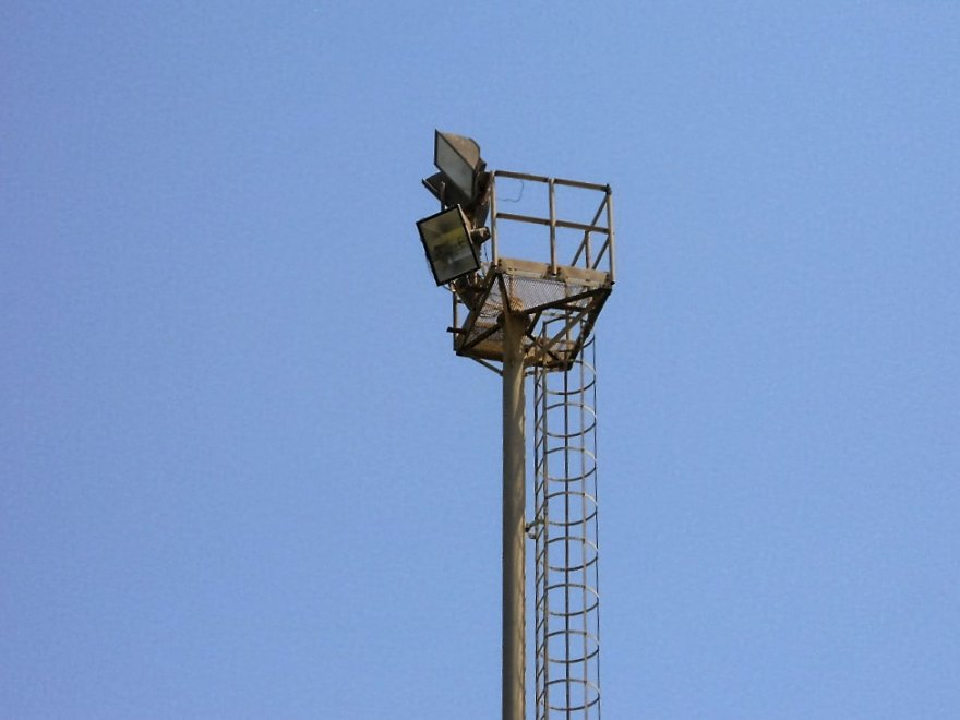 Il campo principale è illuminato a giorno da 4 torri alte una ventina di metri; ciascuna torre è dotata di 4 fari la cui inclinazione, al mio occhio inesperto, giudico almeno 60° dall’orizzonte.