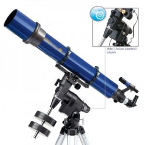 Nel campo dei rifrattori possiamo avvicinarci tranquillamente a diametri molto interessanti come il 120mm di diametro su una solida montatura EQ5 motorizzata, questo comporta un’ inseguimento autonomo degli oggetti puntati (tramite sempre lo stazionamento alla polare); generalmente hanno una lunga focale per abbattere le aberrazioni cromatiche tipici degli strumenti a lente, ed è un valido strumento sia per l’osservazione visuale (planetario e stelle doppie su tutto), ma anche per muovere i primi passi nelle riprese e foto deep sky.