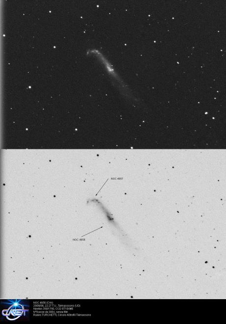 Con un’oculare a grande campo ad ingrandimenti intorno ai 90x si riesce a mettere nel campo anche la 4656, ma il consiglio che mi sento di dare è di osservare singolarmente le due galassie dato che la loro semplicità e luminosità possono aiutare ad usare ingrandimenti più sostenuti. Entrambe, sono ricchissime di dettagli…..