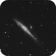 ha una mag. apparente di +10.9 e dimensioni apparenti di 15.1’ x 3’ e la sua luce ha impiegato 9.8 milioni di anni luce per raggiungerci.
