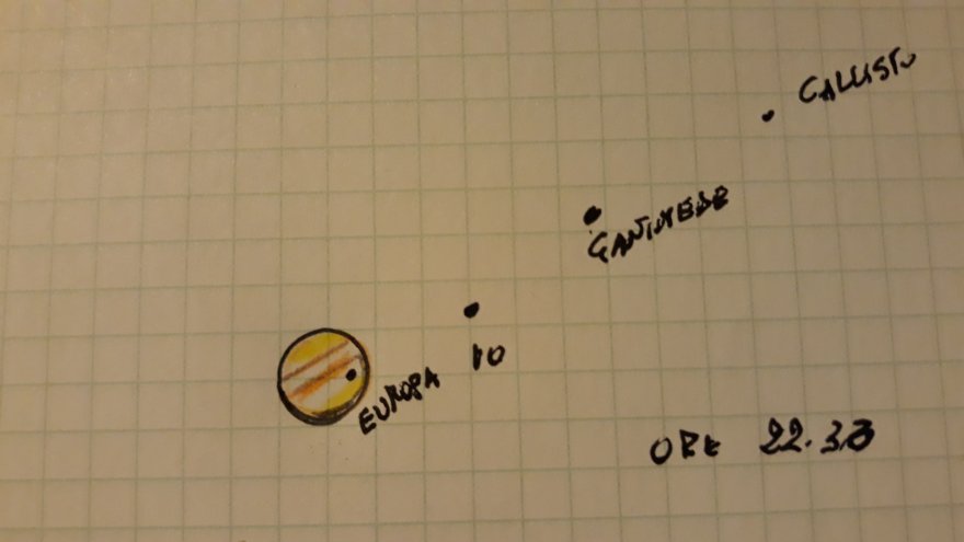Ultimo aggiornamento sono tornato all'osservazione e il puntino nero di Europa lo vedo quasi al centro sotto la banda meridionale. ore 22.55