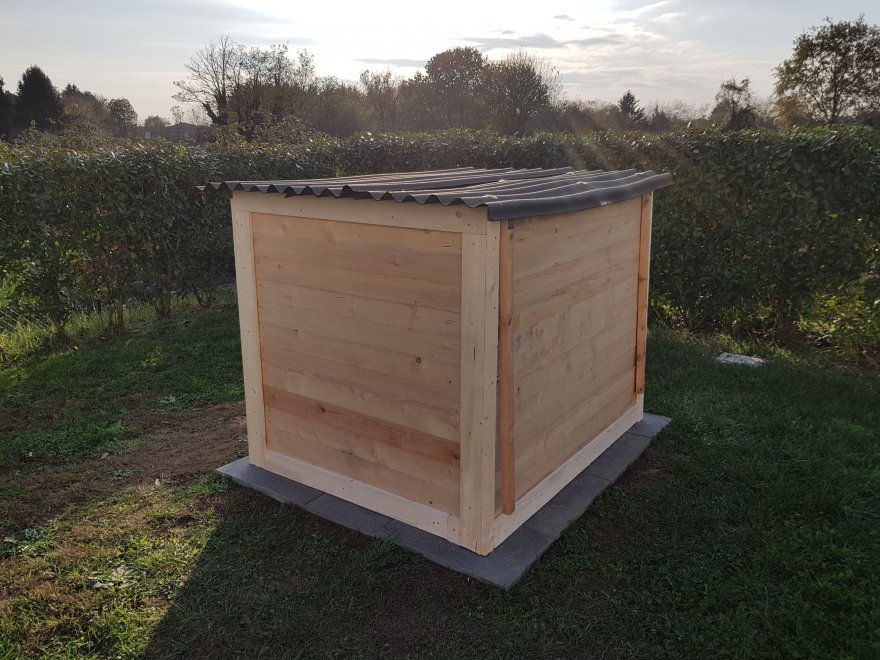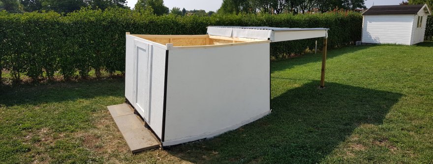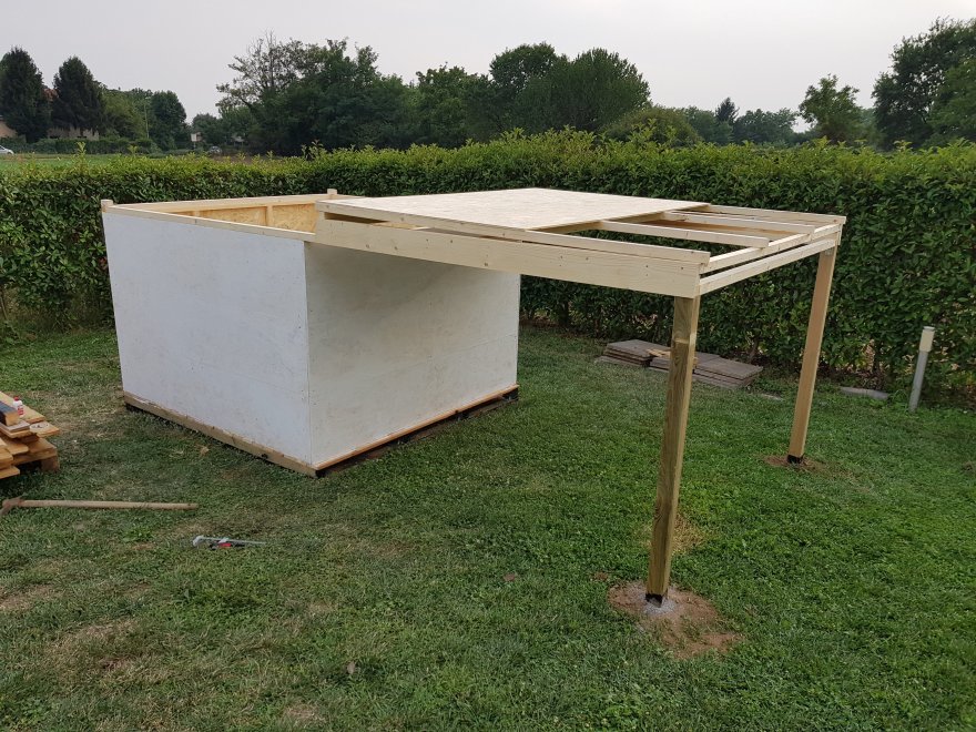 Il grosso dei lavori è fatto, devo fare la porta d'ingresso, chiudere tutte le parti che sono rimaste aperte lateralmente nella struttura del tetto e poi verniciare tutto per bene.