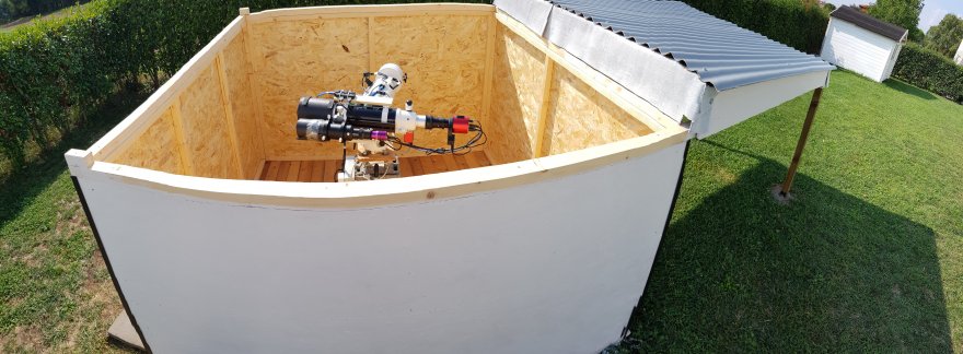 Per ora sono veramente soddisfatto di come sta venendo fuori l'osservatorio versione 2.0, forse ho esagerato con po' con le dimensioni, effettivamente due metri per due è alquanto grande visto e considerato che non devo starci dentro di persona controllando tutto da remoto, però dai, il giardino è grande e in qualche modo dovrò pur riempirlo! :biggrin: