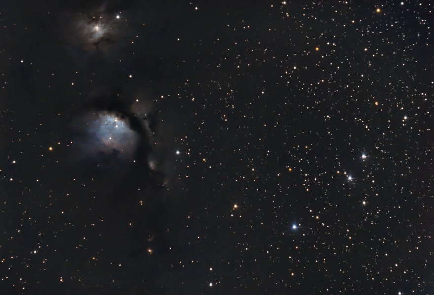 Mi piaceva il campo stellato sulla destra e il modo in cui quella specie di sguardo "demoniaco" formato da NGC2068 e NGC2067 lo osservava. Con il senno di poi, forse avrei dovuto scegliere un'inquadratura che valorizzasse di più i soggetti principali. Pazienza, non si finisce mai di imparare dai propri errori!