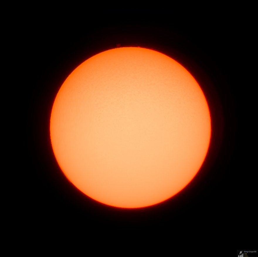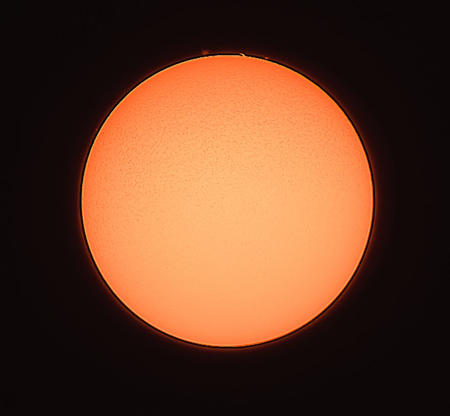 Non ho un metodo per elaborare il Sole e non ho letto nessun tutorial, è la prima volta che mi cimento in una ripresa solare. Con Autostakkert ho allineato ed integrato il 50% dei frames di un video da due minuti. Poi ho provato con Registax ma i wavelets non mi davano buoni risultati per cui direttamente con Photoshop ho un po' tirato le curve, allineato e saturato i colori, e con una maschera di livello ho fuso in un'unica immagine i dettagli luminosi del disco e quelli deboli della cromosfera. Sono sicuro che dal video si possono far emergere molto meglio i dettagli del disco, soprattutto la granulosità, ma devo studiare un po' per capire come fare. Sicuramente l'allineamento con Autostakkert non è stato ottimale perché vedo dei difetti, la granulosità non è uniforme anzi la parte sinistra sembra "sfasata" e lo si nota tirando di più le curve con Photoshop o usando i wavelets di Registax.