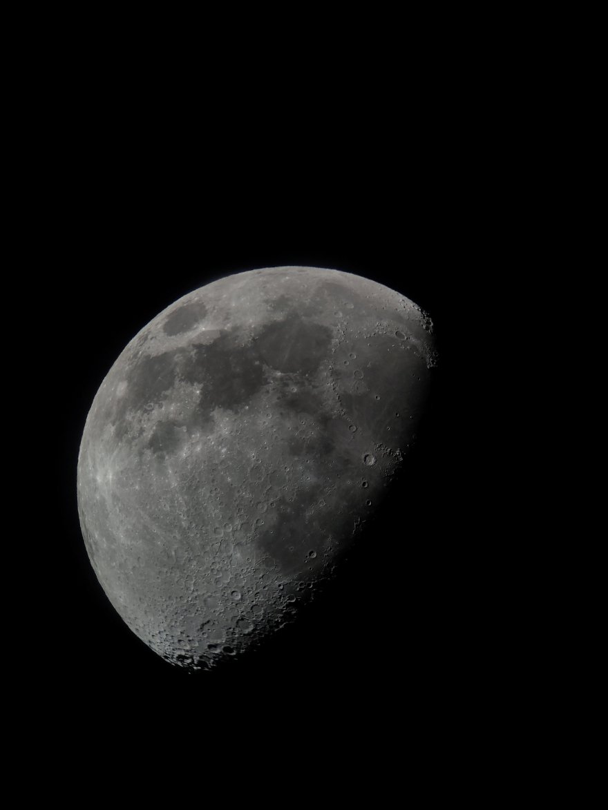 In realtà volevo fare altro con l'FC-76 montato sulla Vixen Super Polaris e con il vintage TS-65P come tele guida, ma il cielo si è impietosamente rannuvolato, quindi sono riuscito a fare la solita foto in afocale a mano libera col cellulare e oculare ortho da 9mm.