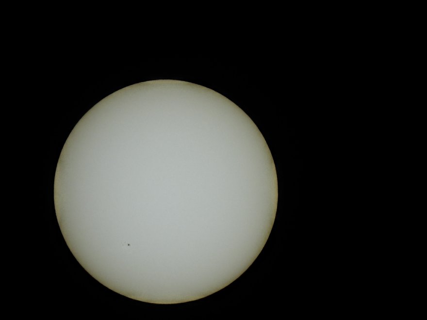 Non ho fatto scatti multipli, non ho fatto post-produzione, è una ripresa estemporanea e difettosa (un artefatto o difetto della lente può essere scambiato per una macchia solare).