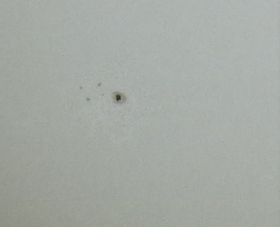 il dettaglio con i particolari della macchia principale, accompagnata da altre macchioline (**) non è un'ingrandimento dell'immagine scattata, ma è una cattura dal monitor del PC con uno zoom pari a 1x... :shock: