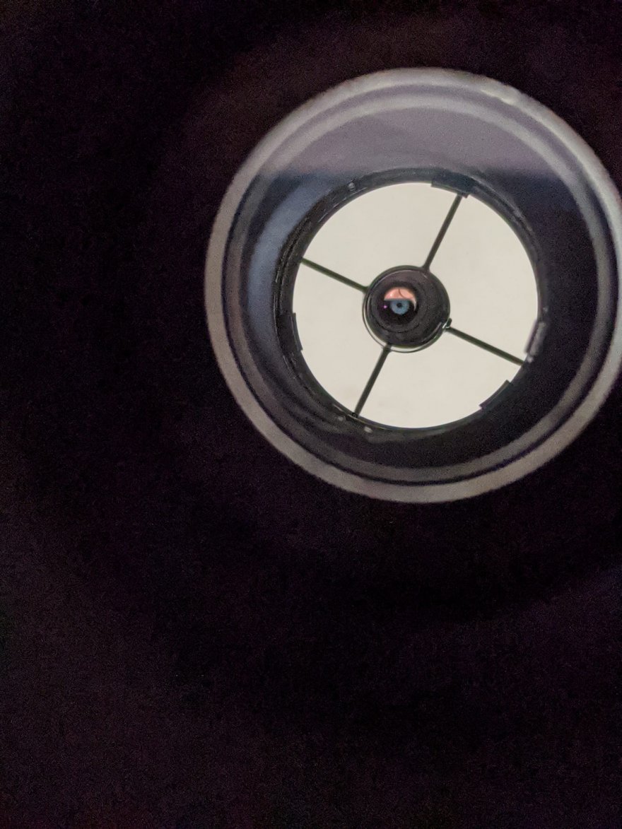 Per questo motivo allego una foto fatta con cellulare direttamente del focchegiatore. Il secondario mi sembra ben centrato e attraverso la foto ho misurato la lunghezza dei 4 supporti del sercondario. Misurano tutti lo stesso valore.