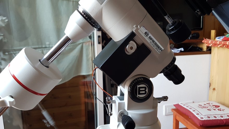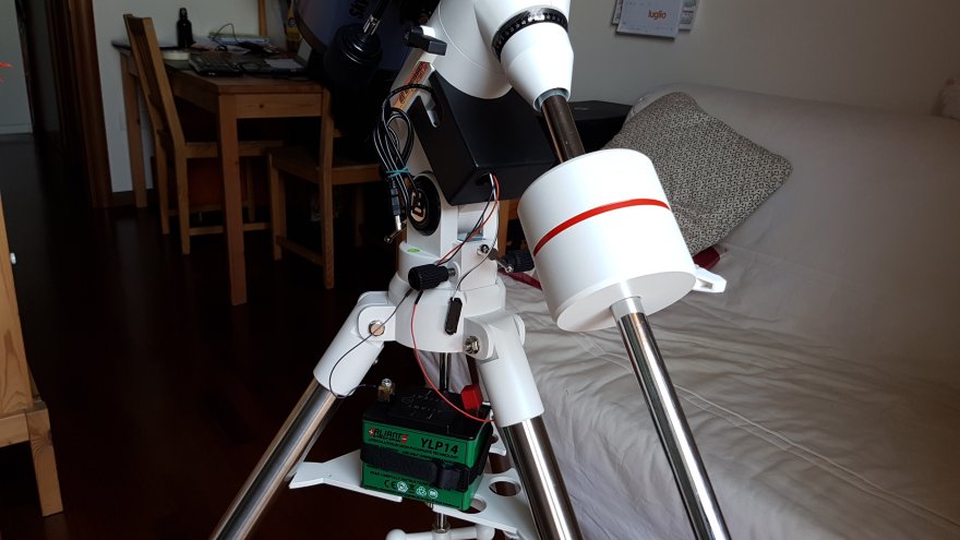 La mia montatura è una EQ5 Exos2 Bresser, ma penso non vi siano differenze per qualsiasi EQ5 Skywatcher, per altre montature controllate le distanze e spazio disponibile.