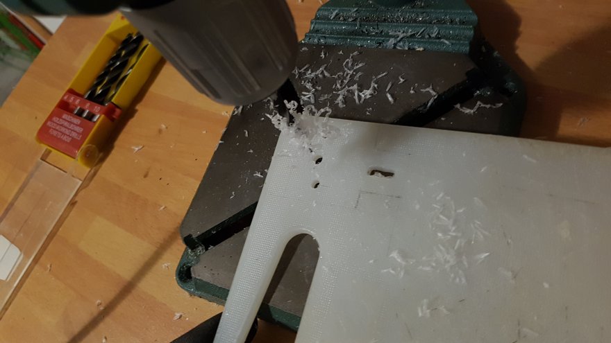 - Già tramontato (non presente in foto) un vecchio tagliere ikea, sacrificato per costruire la base su cui fissare il supporto per il motore (a nord di Cefeo) alla montatura. Occhio all'altezza del supporto se volete usare il coperchio nero (5cm per la mia montatura). Mi manca una stampante 3D, accidenti: vi sono schemi online per rendere le cose ancora più compatte e professionali.