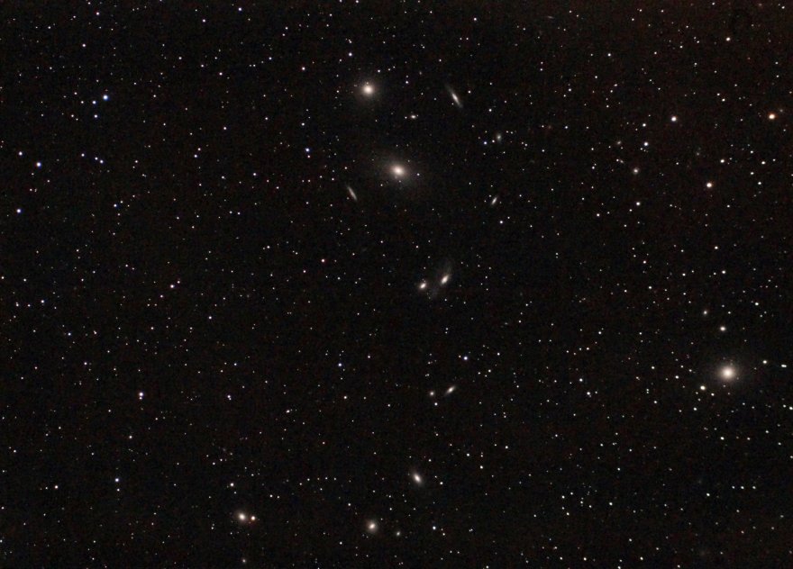 Ho voluto provare questo ammasso di galassie perchè ben si adatta alla focale del 72/420, ma soprattutto perchè non c'è quasi nient'altro in cielo dal mio balcone in questo periodo. Il risultato è terribile, finora avevo ripreso quasi solo nebulose in banda "quasi" stretta e quindi non ero abituato a trattare un fondo cielo del genere. Ormai tra impegni e meteo le serate buone sono preziosissime e devo andare praticamente a colpo sicuro. Secondo voi a giudicare dalla foto vale la pena un'altra serata di riprese o provo a cambiare soggetto direttamente? La domanda la faccio anche perchè mi è sembrato che con l'integrazione della seconda serata non migliorasse più di tanto.