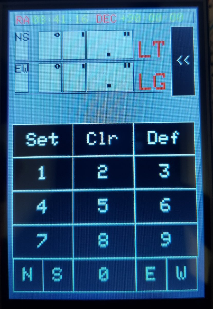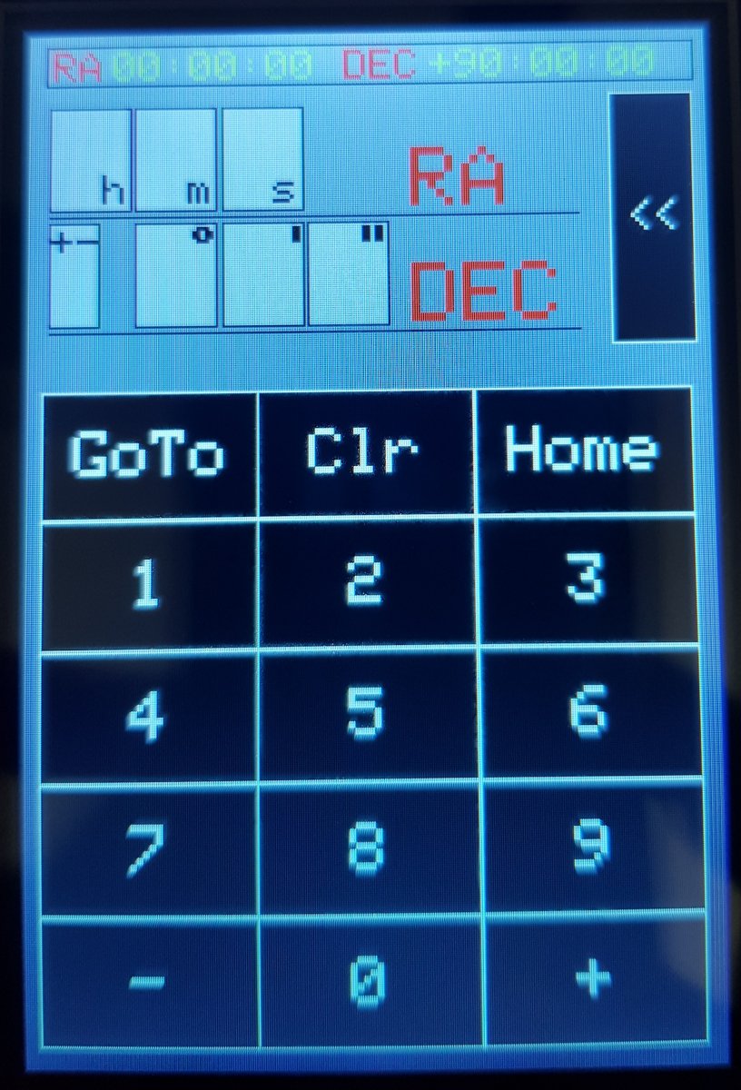 1) il Goto dove è possibile inserire manualmente le coordinate (da implementare in futuro con database su scheda Sd);