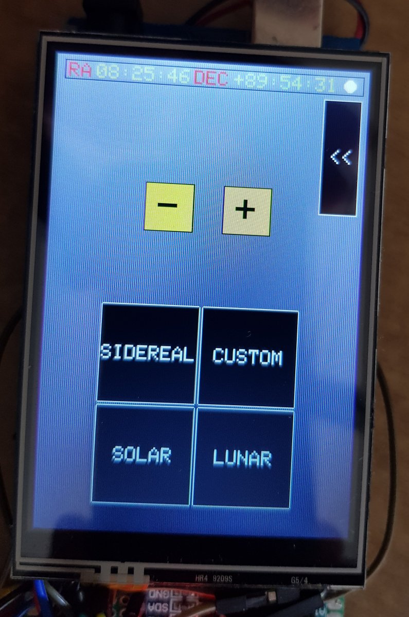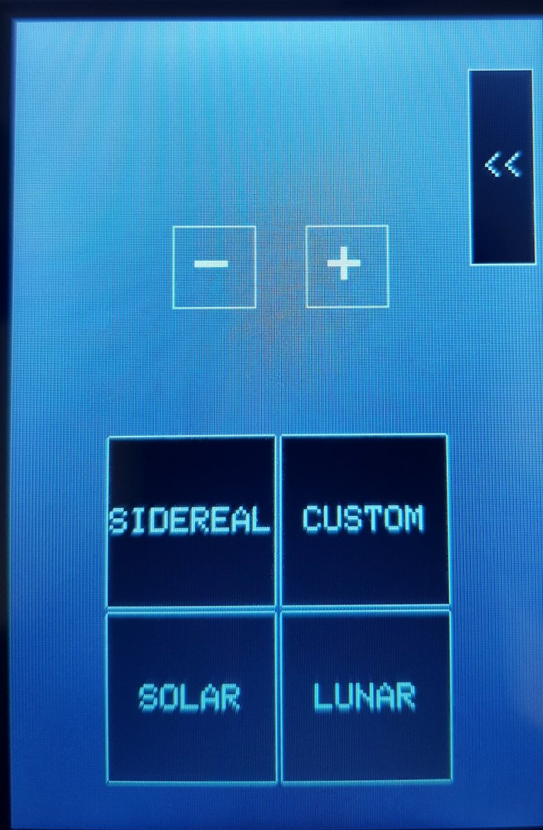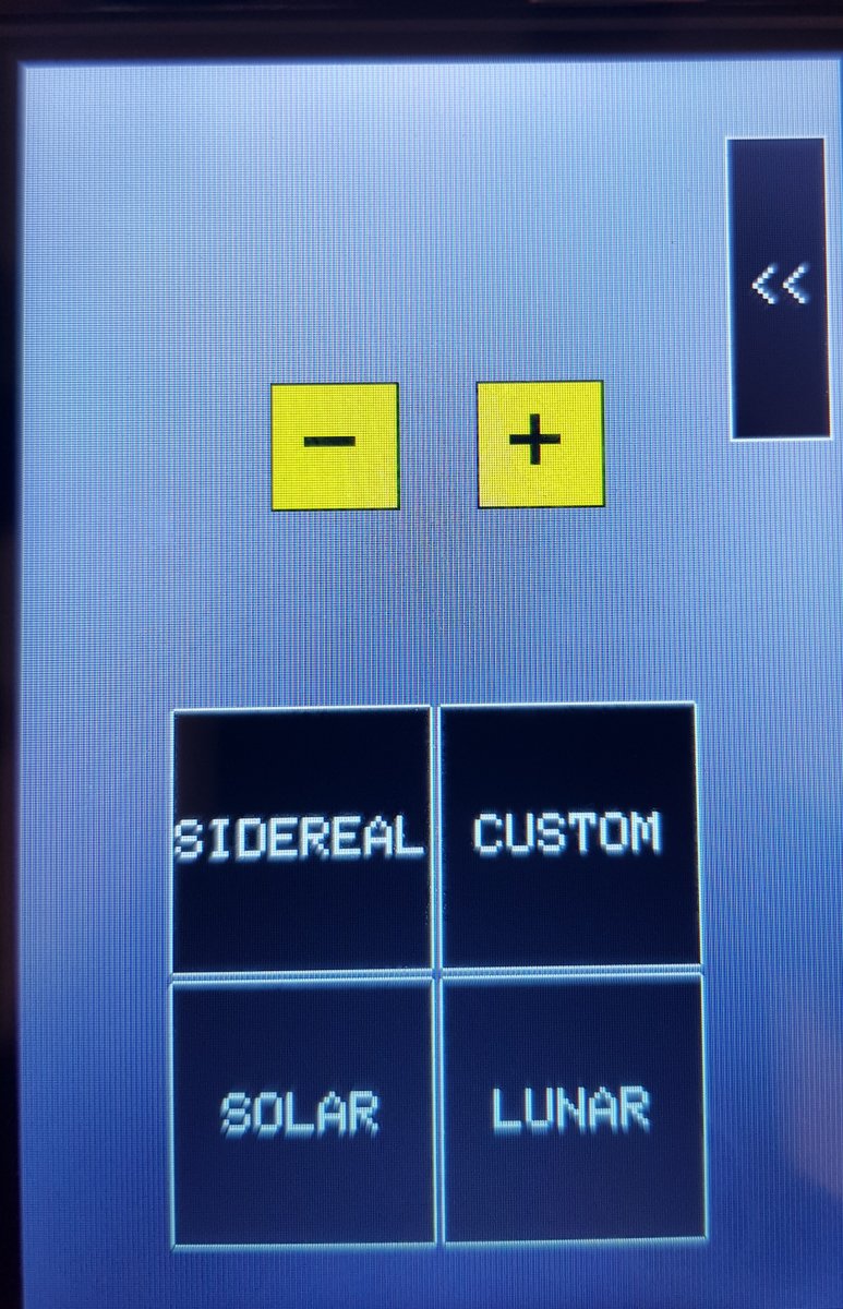 2) Il track, con quattro modalità: a) Siderale b) Lunare c) Solare d) Custom, dove correggiamo noi la velocità di inseguimento (+/- 20% track siderale).