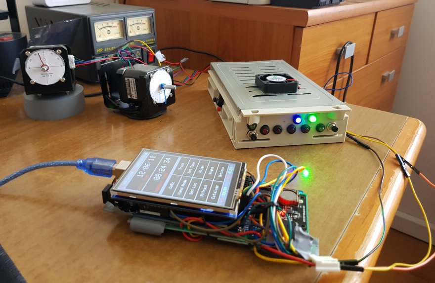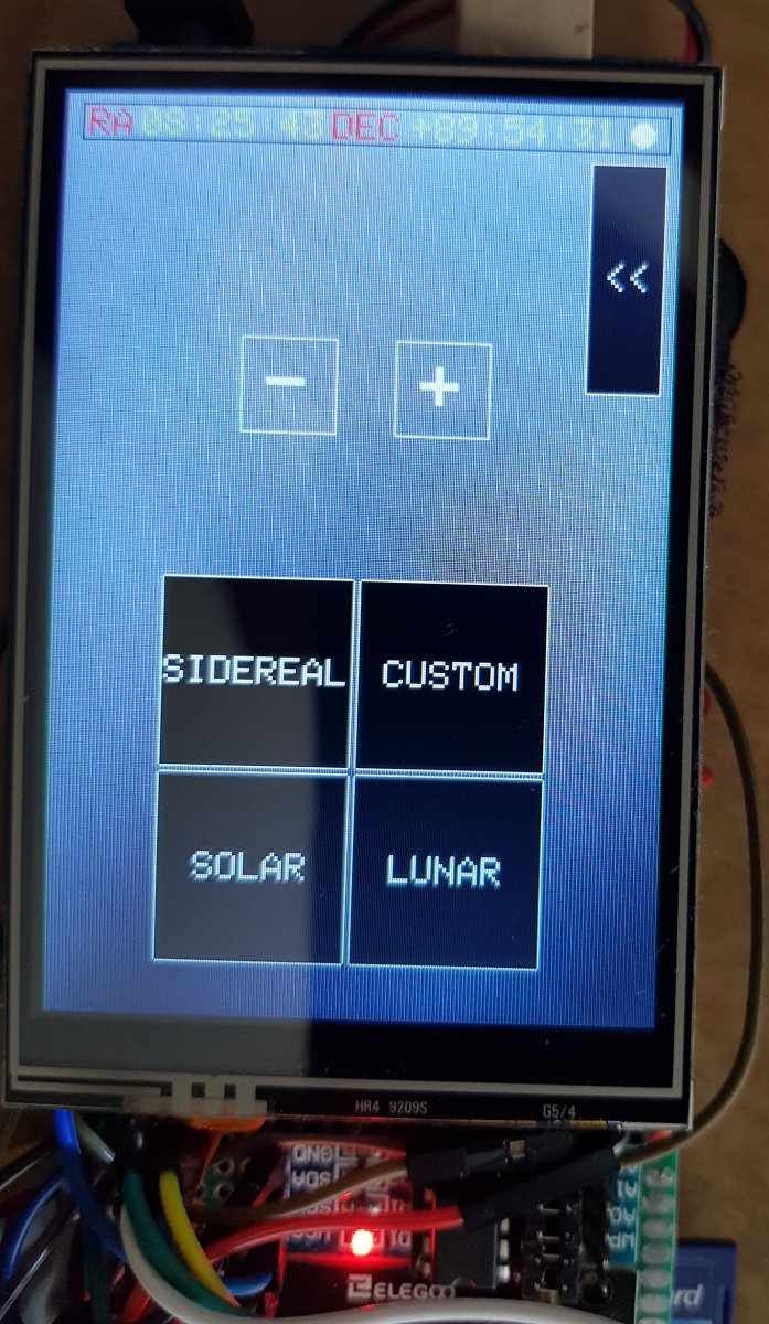 Il sistema è composto da un Arduino Due per la parte lato telescopio, dove risiede il cuore del sistema, e un Arduino Mega per la parte di controllo, dove è installato lo schermo da 3,5 pollici, dal quale è possibile inviare i nostri comandi.
