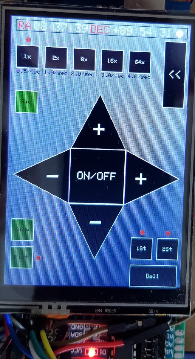 Aggiungo di seguito un altro video, che illustra come vengono comandati i movimenti in RA e in Dec tramite schermo touch, eliminando così il joystick analogico.