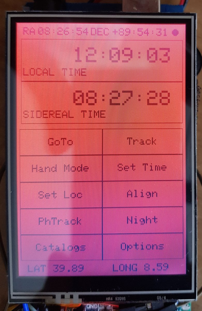 In effetti è un bel mattone. Sono spesso arrivato al limite del povero Mega. Il vantaggio però di aver separato il sistema di comando e di "calcolo", con un altro Arduino, sta proprio nel fatto che se lo schermo fa le bizze, si può resettare senza perdere le informazioni di puntamento...