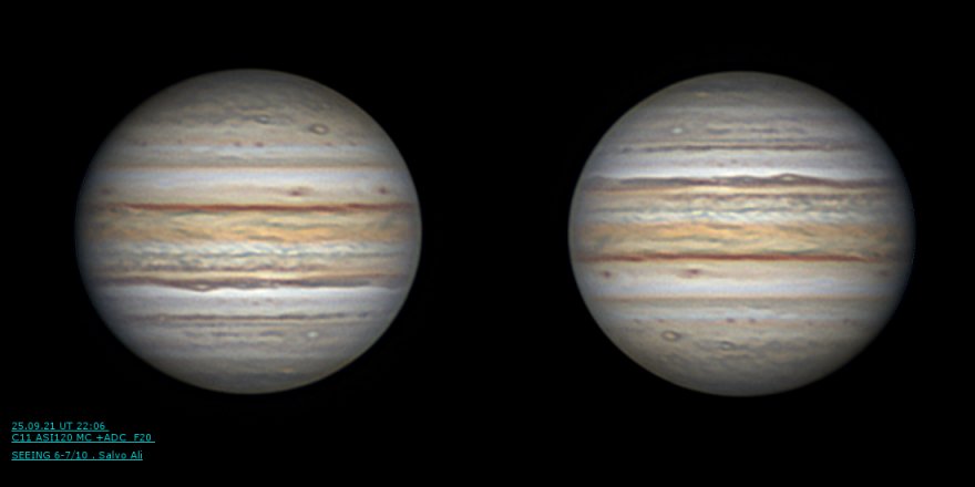 Sono sette riprese derotate da 70" , solito C11 UT : 22:06 ( ora media). La seconda ripresa ( 22:05) é la migliore , incredibile come il seeing riesce a fare veramente la differenza.