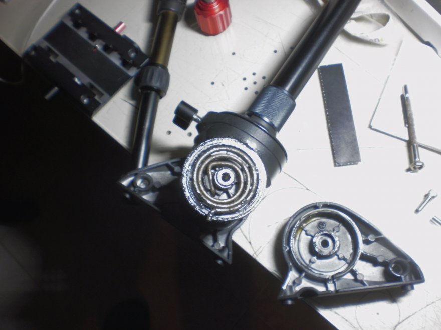 Hai il treppiede con la colonna centrale? La testa, dalle foto premetto, sembra abbia della plastica, specie le levette, nel caso possono spanarsi stringendo.