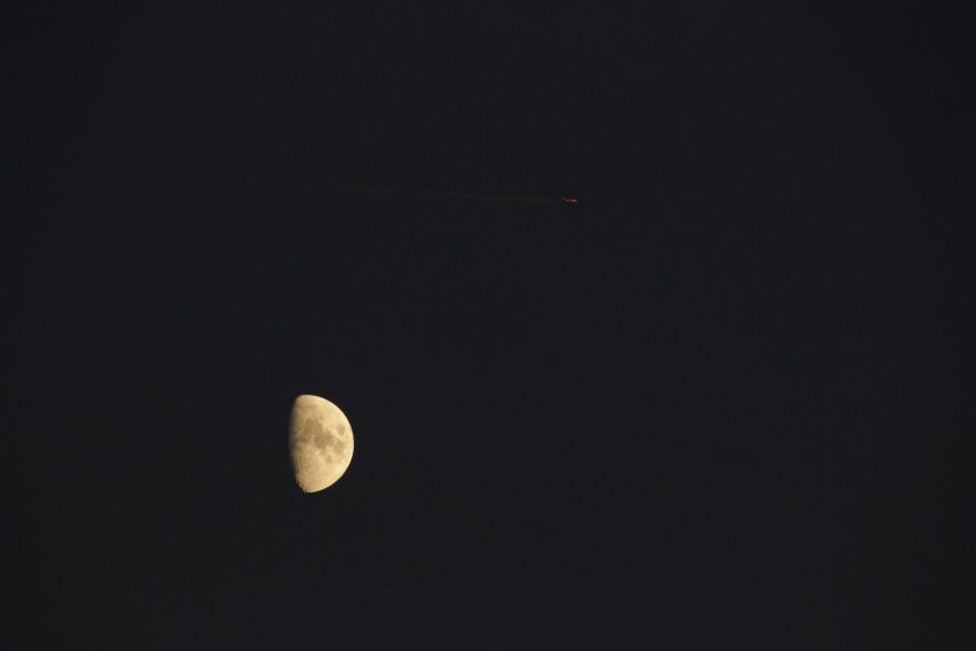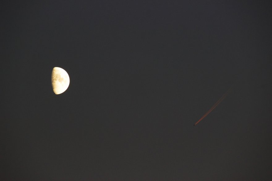qualche scatto curioso di questi giorni, con le scie degli aerei colorate del rosa del tramonto e la luna