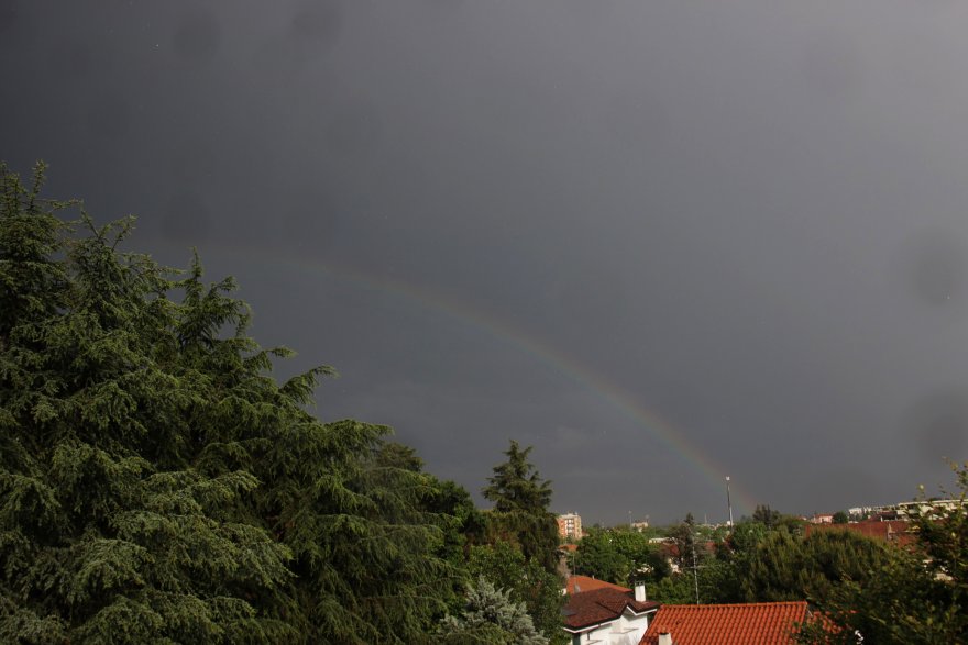 In effetti non si nota molto nella foto....ma il cielo sopra l'arcobaleno era molto pił scuro di quello sotto, sembrava proprio tagliato in due dall'arcobaleno