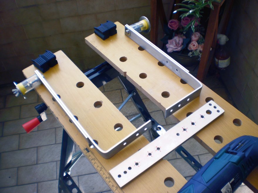 E' arrivato tutto ieri, oggi mi sto mettendo al lavoro, che è abbastanza semplice; tagliare la barra in tre pezzi da 30, 30 e 40 cm, il profilo serie 3060 a innesti specifici per posizionarli saldamente a "T", poi non mi rimane che fare i fori passanti per la viteria, due M10 dove collegherò gli adattatori di Lolli, 4 fori M6 per il collegamento alla Giro3 e due fori da ¼" per il collegamento del morsetto arca swiss.