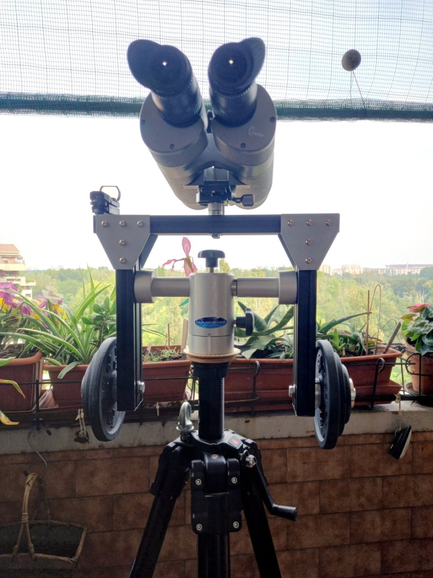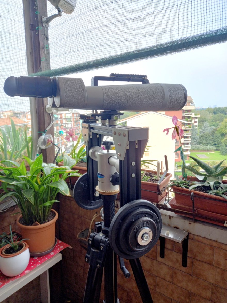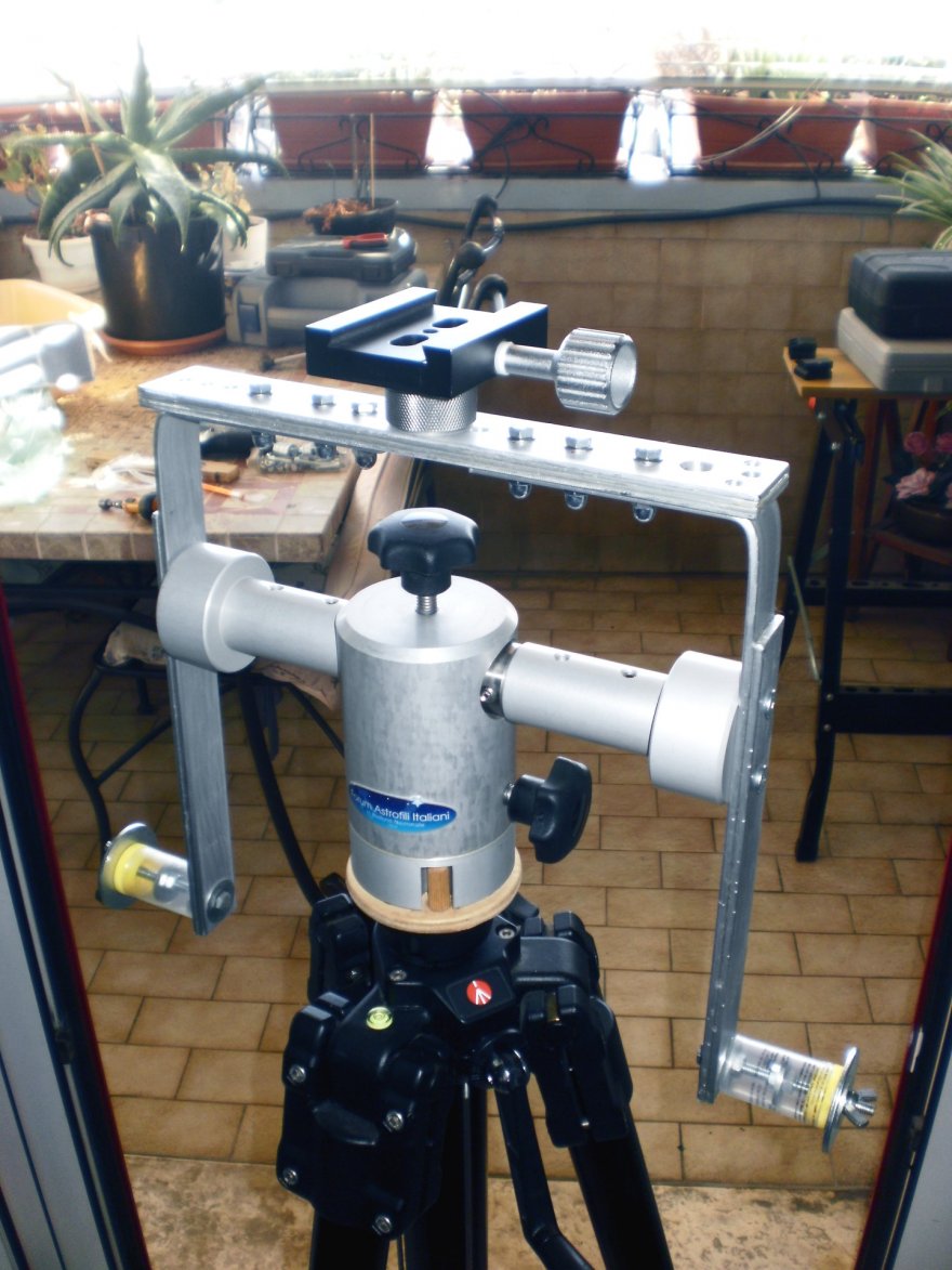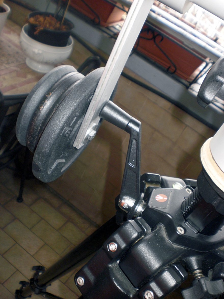 In futuro, quando farò un'uscita con i miei amici aerowatcher in quel di Malpensa, lo proverò anche con i 6 kg abbondanti del nexus100 di uno dei miei colleghi (oltre a verosimilmente tra gli 8 e i 9 kg di contrappesi), dovrei così simulare il carico della prova fatta col C8 e vedere se con le modifiche di collegamento del morsetto, le cose sono migliorate o se i 15/16 kg di carico totale (strumento + contrappesi), rimangono il limite di questa realizzazione.