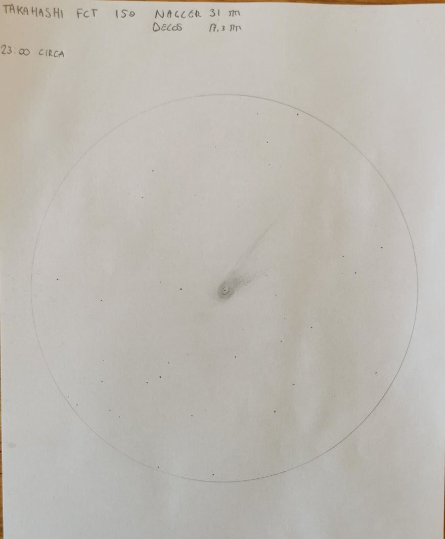 Ieri riesco finalmente a puntare la cometa al telescopio.