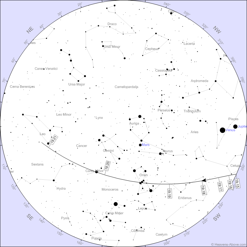 stasera intorno alle 19:19 la stazione spaziale cinese Tiangong attraverserą la Cintura di Orione ...:cool: