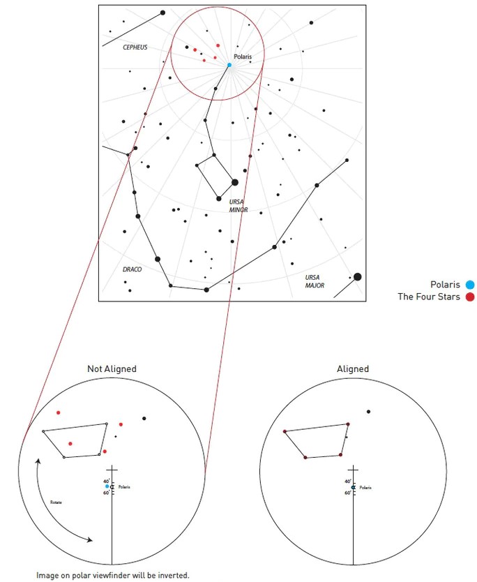 nello specifico mi ritrovo con la "mappa" del cannocchiale polare non allineata alle stelle che vedo,