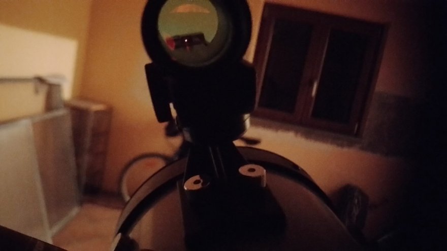 Ciao. Ho notato che il cercatore punto rosso è montato al contrario, cioè lo stai guardando dalla parte sbagliata ed è per questo che vedi il LED in basso.
